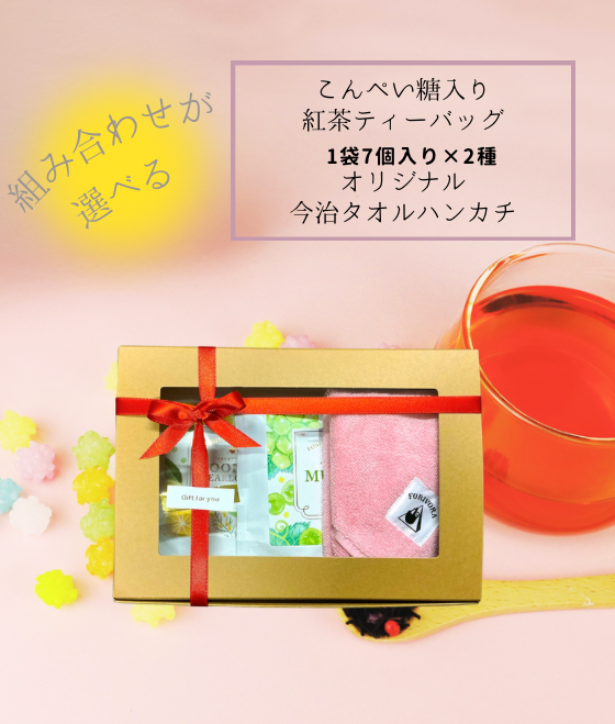 こんぺい糖入り フルーツティー ギフト 選べる 2種類 今治タオル ハンカチ マスカットティー ピーチティー ベリーティー ルイボスアールグレイティー 金平糖